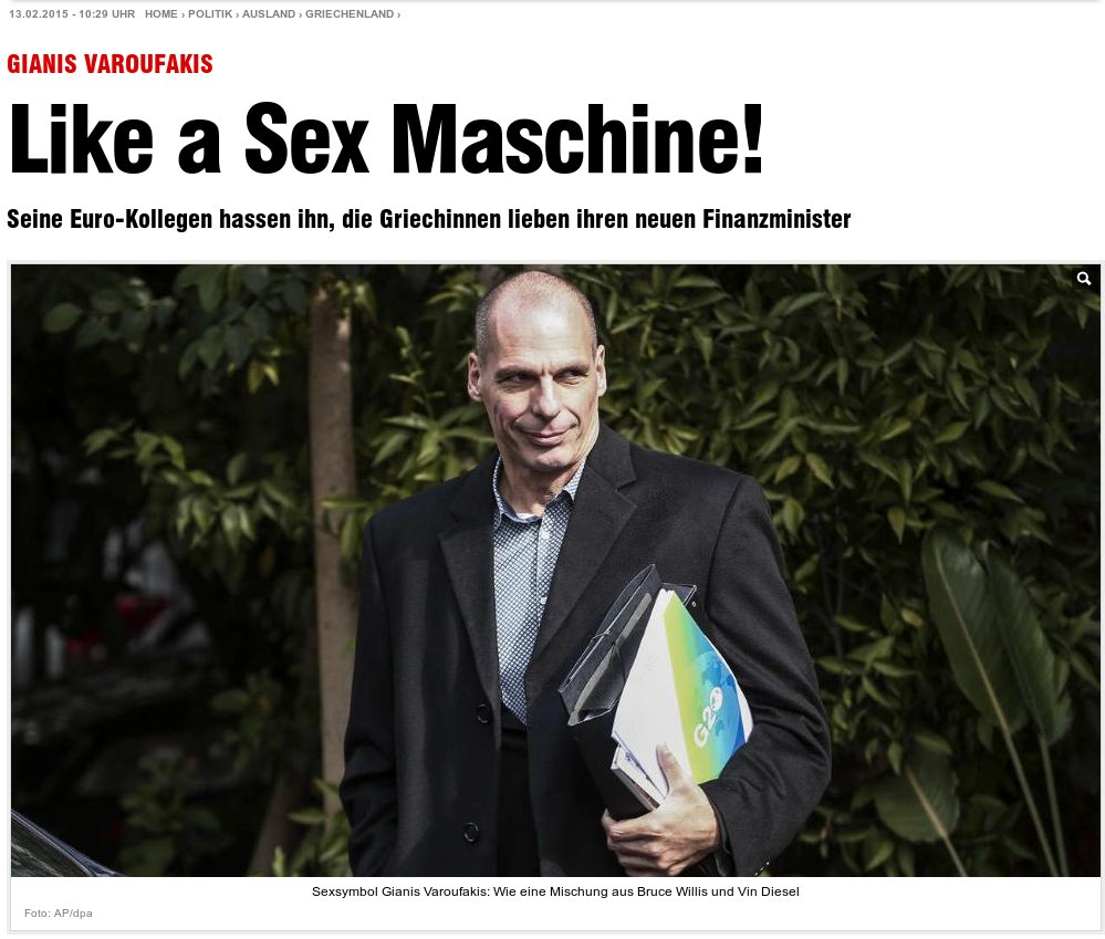 Το συγκεκριμένο άρθρο επικεντρώθηκε στο σeξ απίλ του Γιάννη Βαρουφάκη, παρομοιάζοντάς τον μάλιστα με τον Μπρους Γουίλις και τον Βιν Ντίζελ.