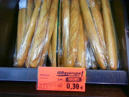 Μείωση τιμής στις μπαγκέτες όπως βλέπετε και εσείς στην εικόνα, μόλις ένα λεπτό! Από 0,40 η νέα φθηνότερη τιμή είναι 0,39!!! Τρέξτε να προλάβετε . . . (τα υπόλοιπα σχόλια …δικά σας )