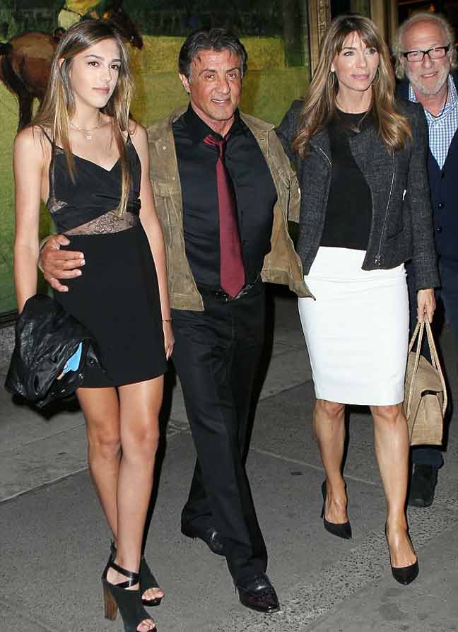 Η 46χρονη σύζυγος του Σταλόνε, υπήρξε και εκείνη κατά το παρελθόν μοντέλο, κάτι που επιθυμεί και η 16χρονη. Ο 68χρονος διάσημος ηθοποιός, έχει κάνει πέντε παιδιά-το 2012 έχασε το γιο του Sage.