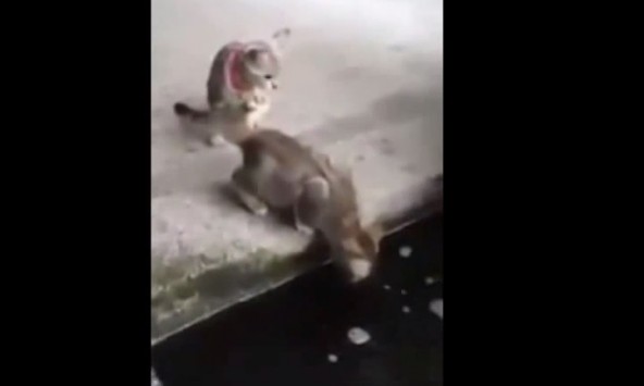 Το ψάρι και το μικρό γατάκι χάθηκαν στο νερό, με τη μητέρα του να έχει μείνει παγωμένη από το θέαμα και την παράξενη αντιστροφή ρόλων!